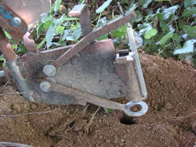 Il suffit d’écarter le monticule de terre et faire apparaître le trou de la galerie de la taupe. Puis mettre le déclencheur circulaire au-dessus. Mettre la cartouche et armer le percuteur. Puis attendre que la taupe s’active à reboucher le trou découvert.